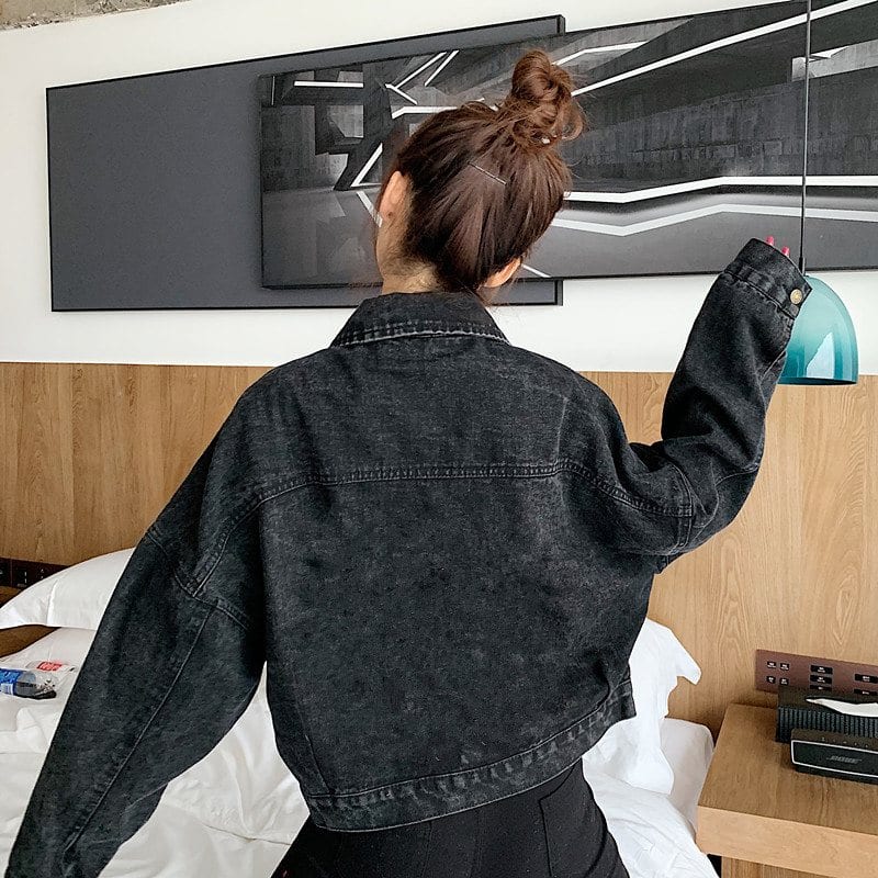 Укороченная черная джинсовка оверсайз