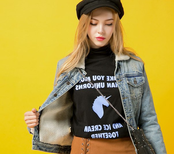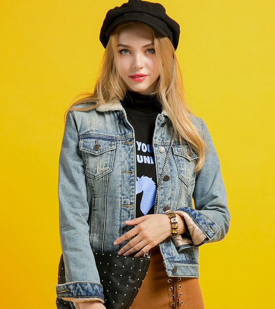 Такая джинсовка просто незаменима для модниц, ведущих активный образ жизни. Данная модель будет гармонично смотреться не только с спортивной обувьюна , но и с деловой.