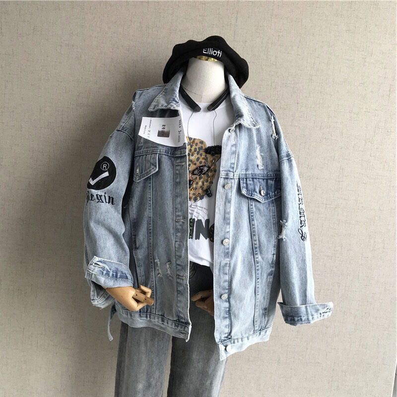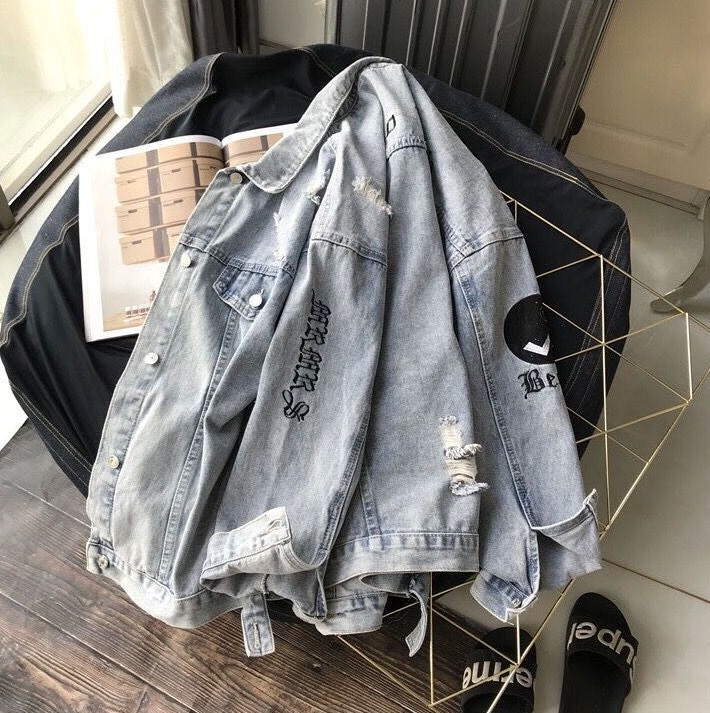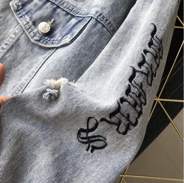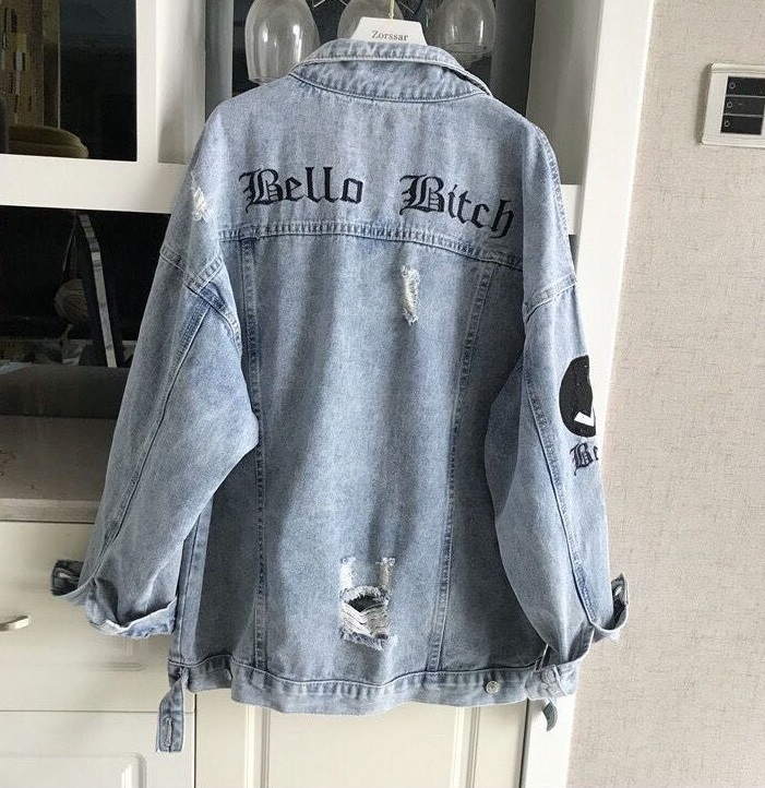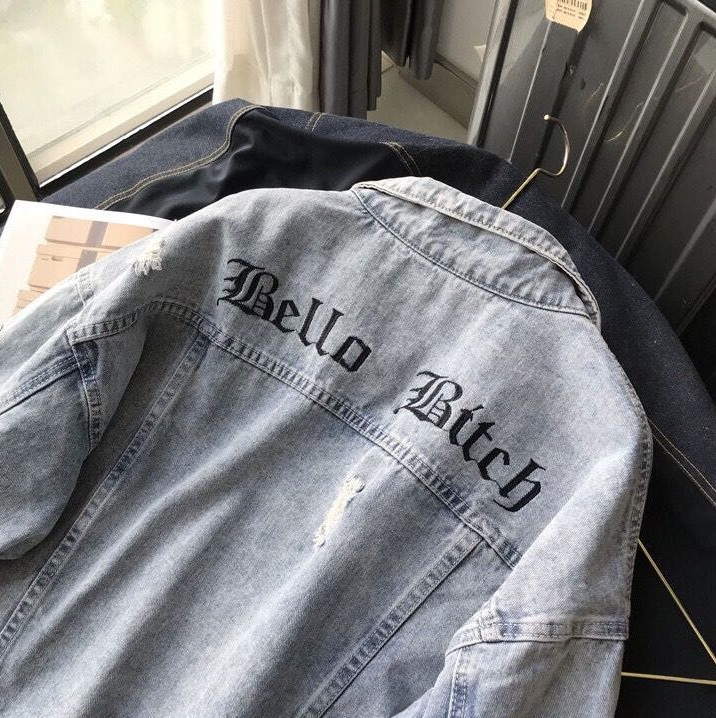 Женская джинсовая куртка с вышитой надписью Hello Bitch