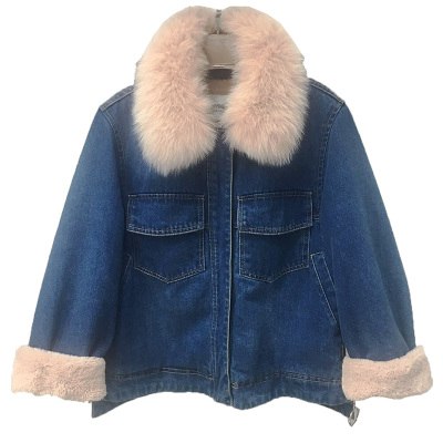 Женская теплая джинсовая куртка с пушистым воротником