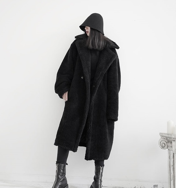Длинное плюшевое пальто на пуговицах - заклепках