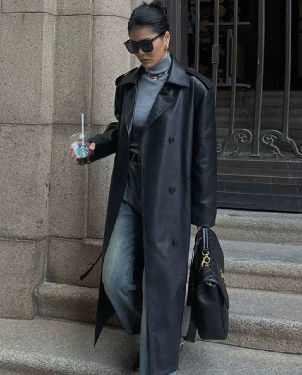 Женский кожаный плащ тренч - свободного кроя
