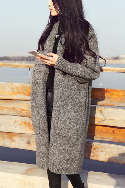 Женское легкое длинное пальто кофта без застежек