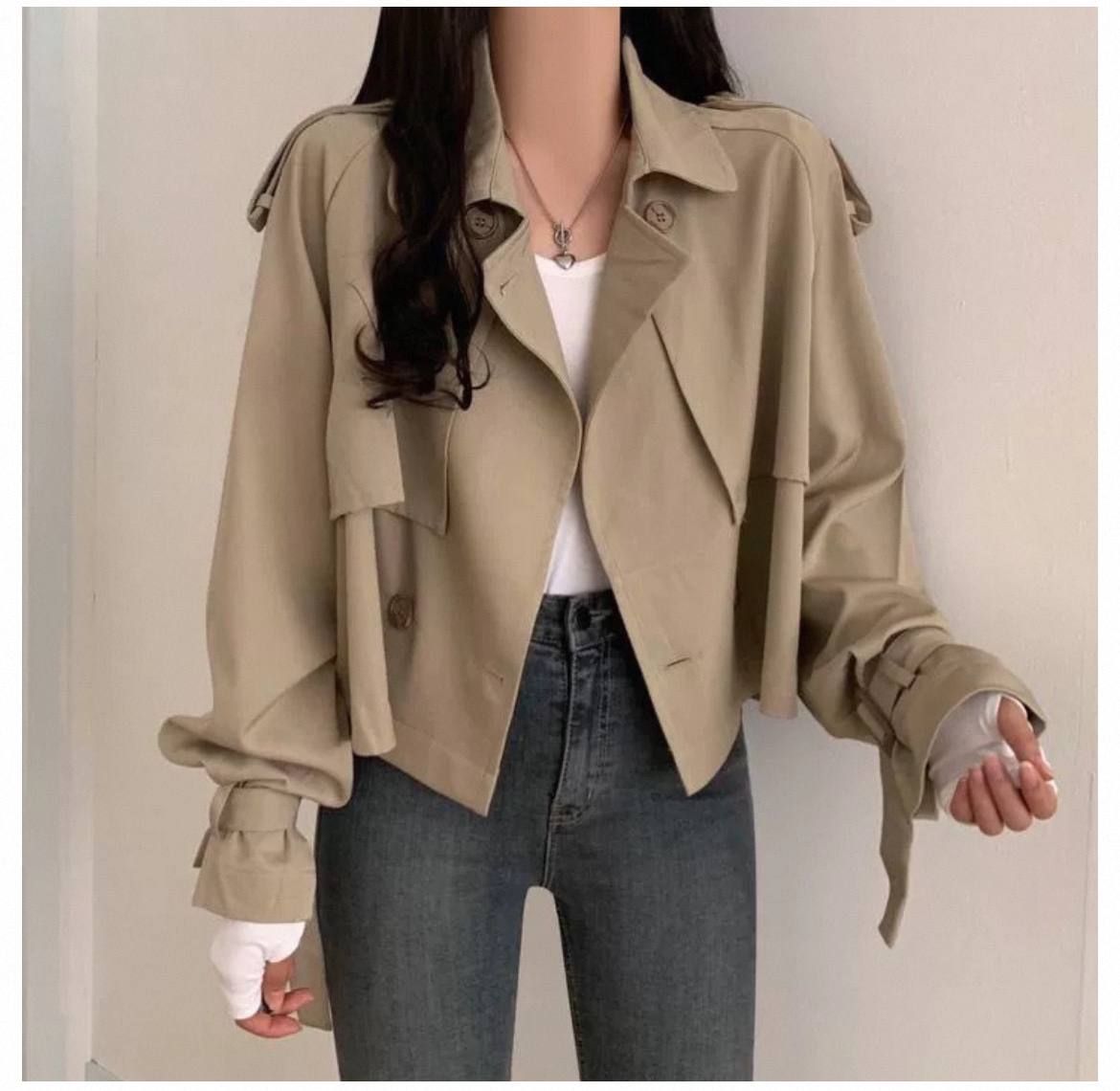 Женский укороченый тренчкот пальто с ремнем и пуговицами