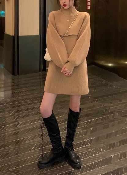 Женское теплое платье двойка с длинными рукавами