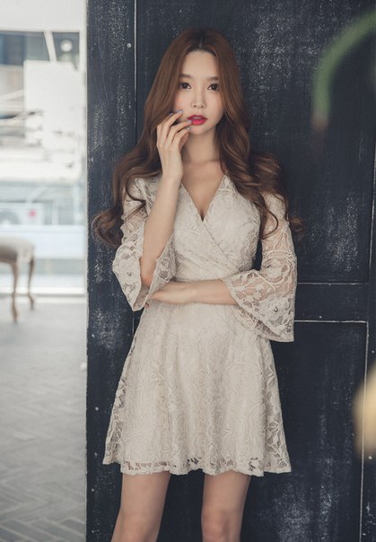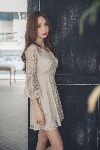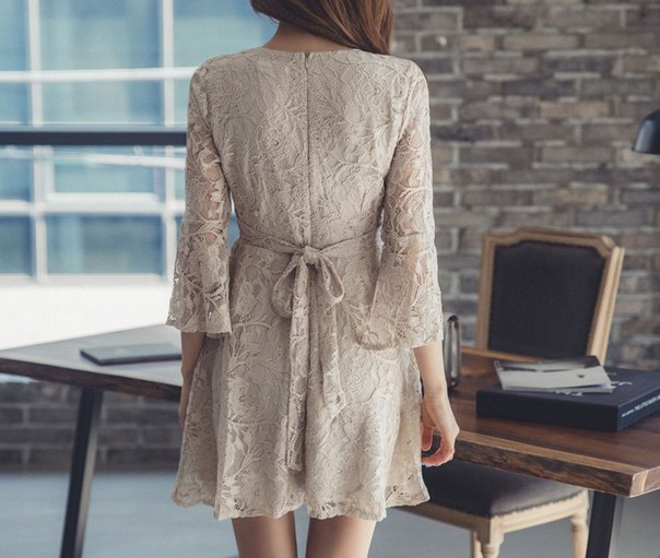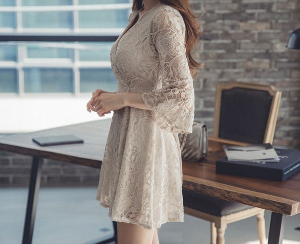 Укороченное кружевное платье с V образным вырезом
