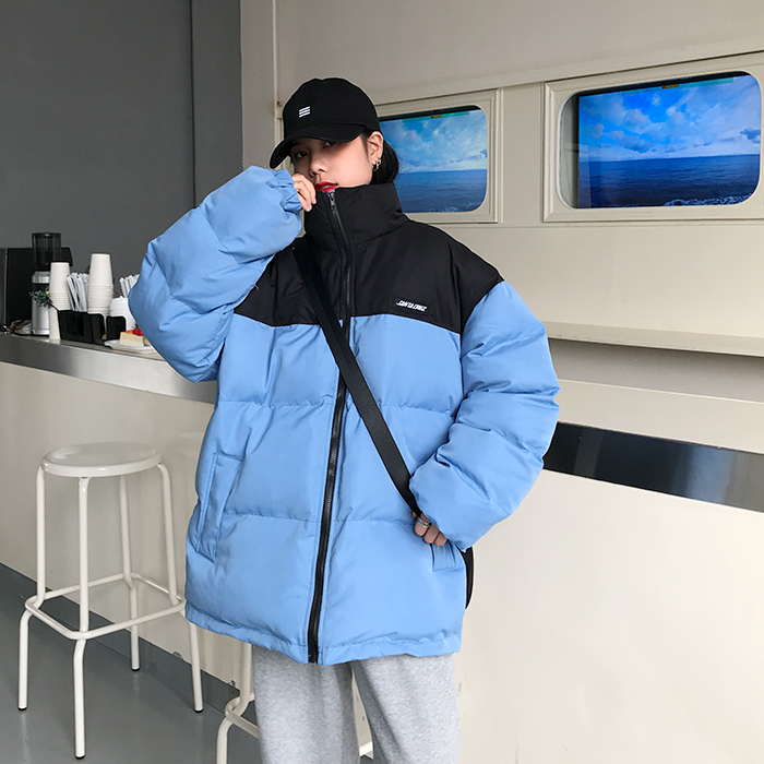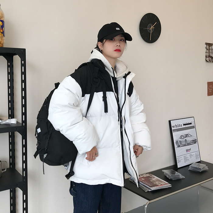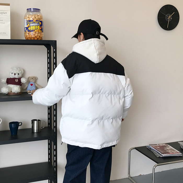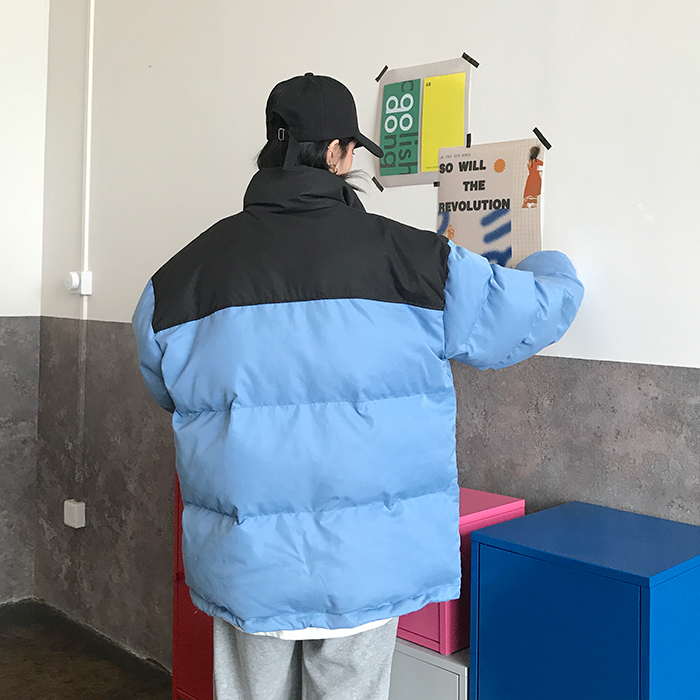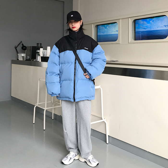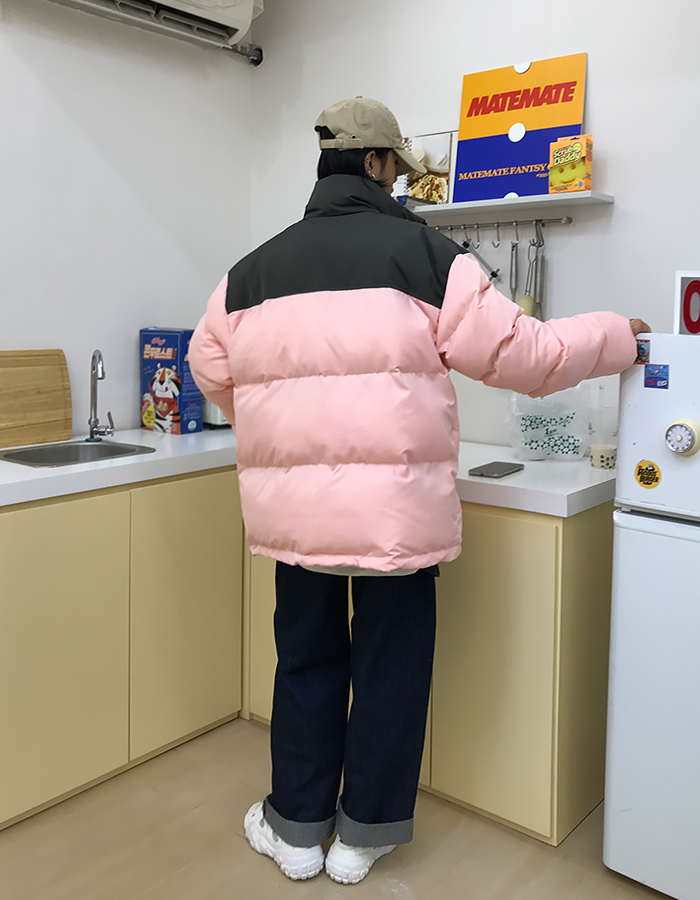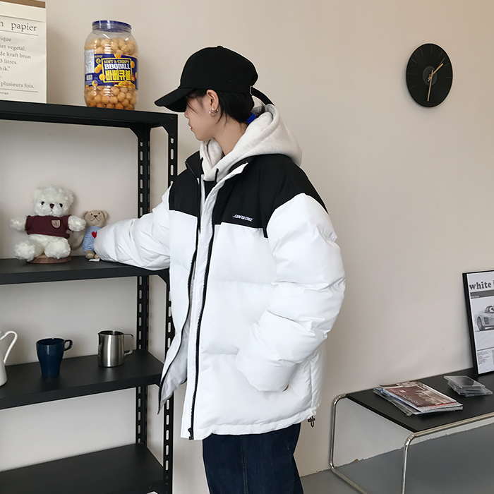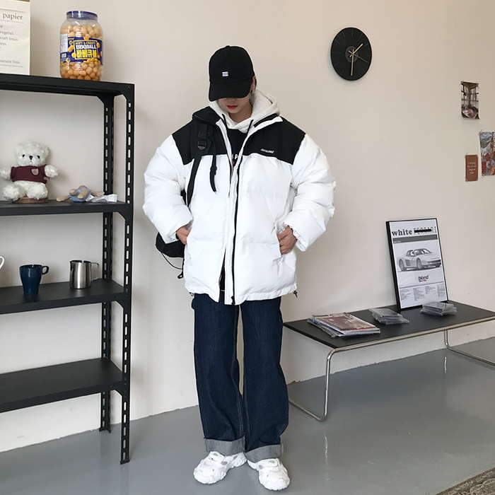 Двухцветная дутая свободная куртка пуховик мужская и женская