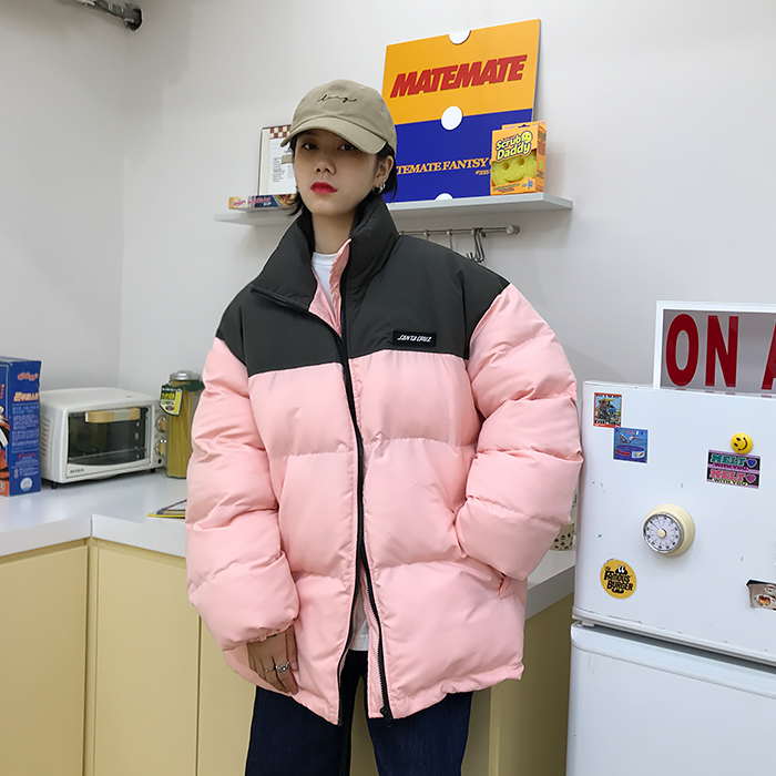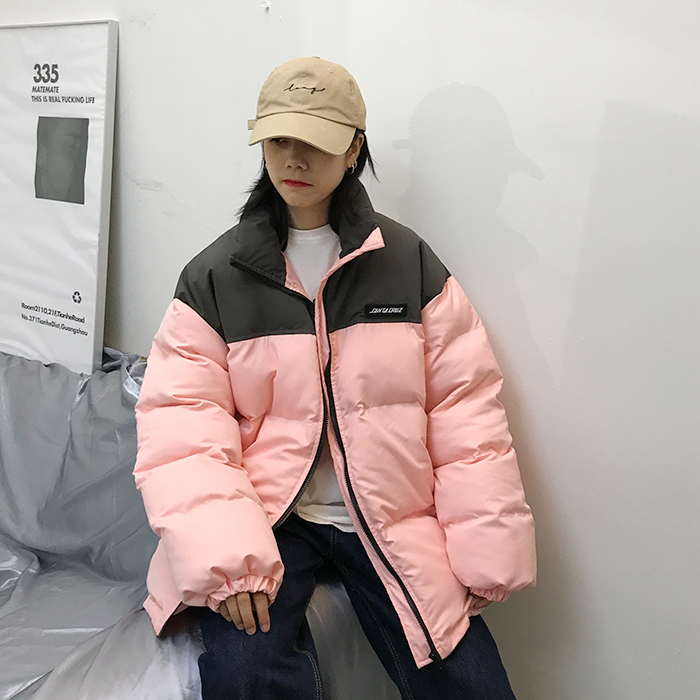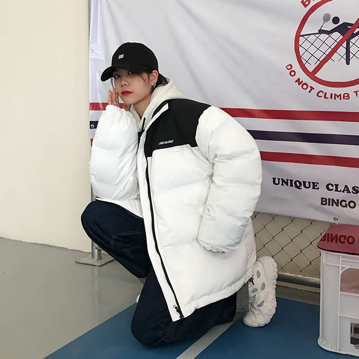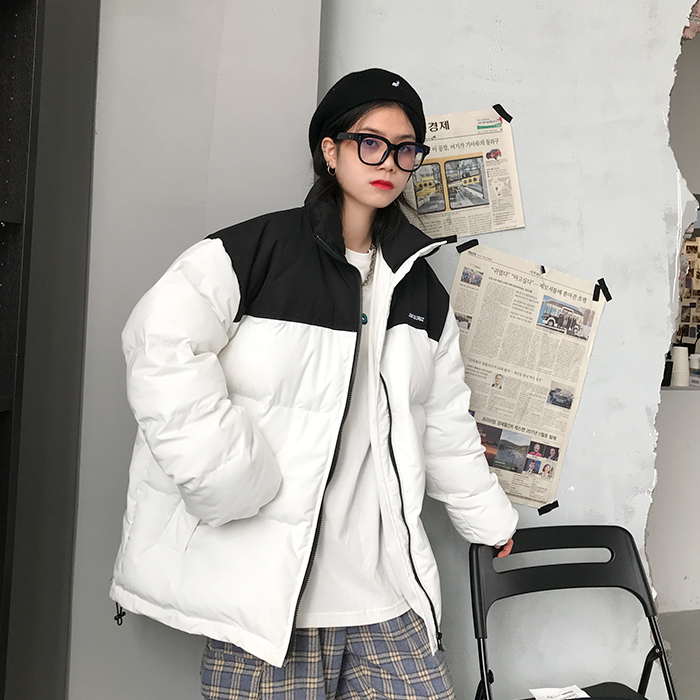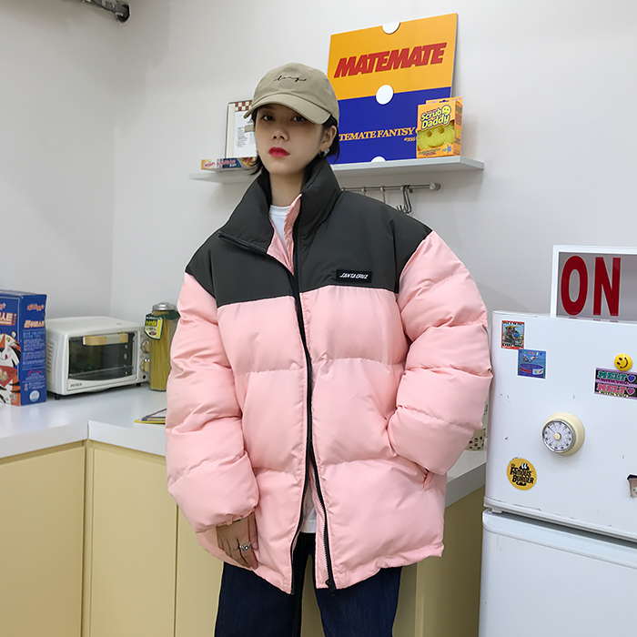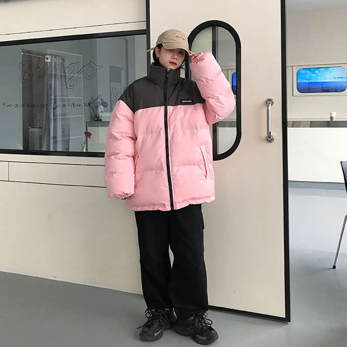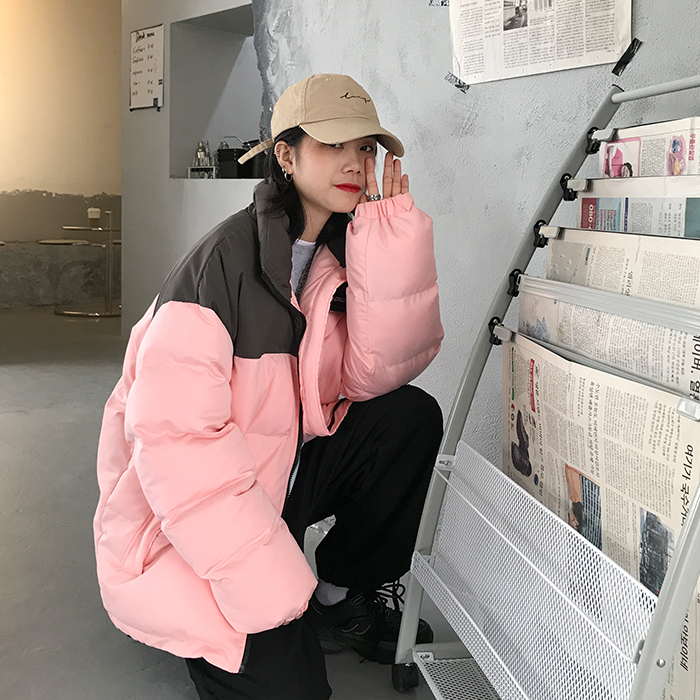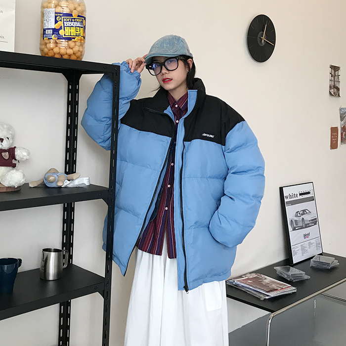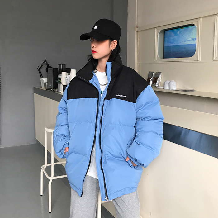 Двухцветная дутая свободная куртка пуховик мужская и женская
