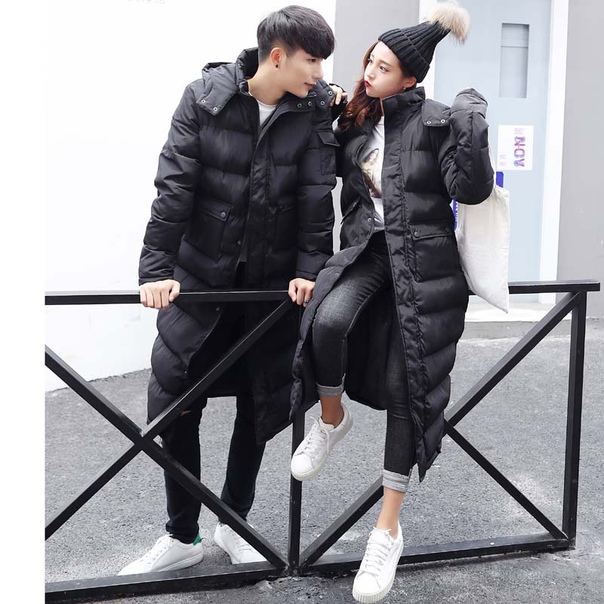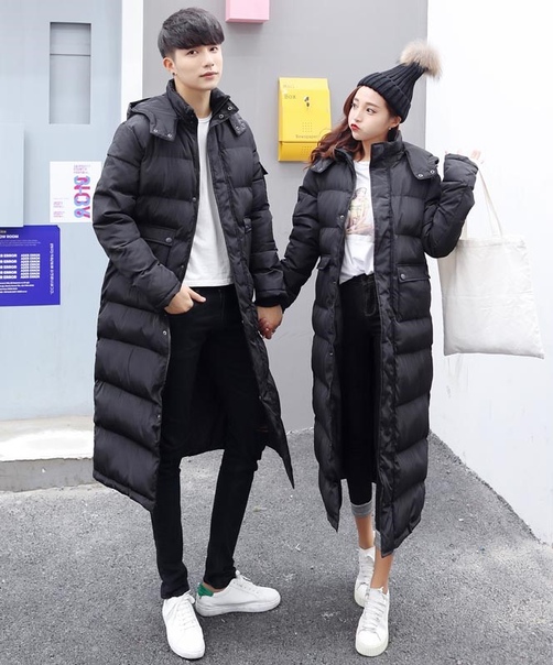 Модный молодежный длинный пуховик - ниже колен
