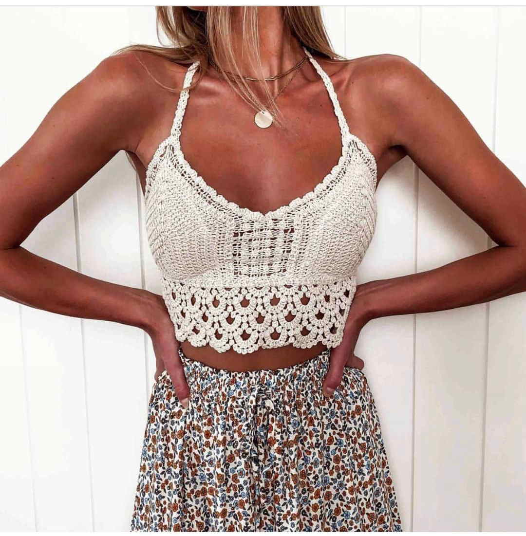 Модный вязаный топ на бретельках
