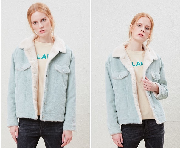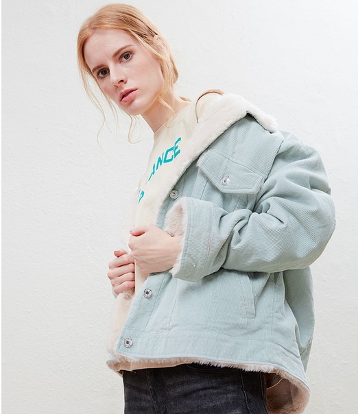 Модная вельветовая куртка на меху женская
