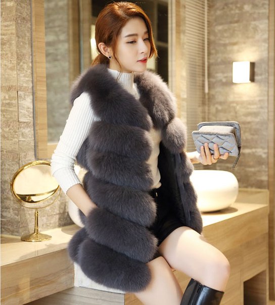 Теплая женская жилетка имитация меха лисы