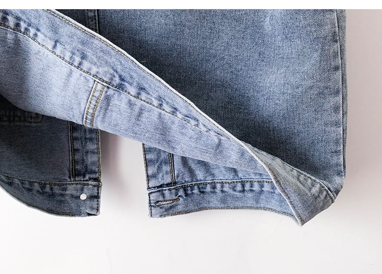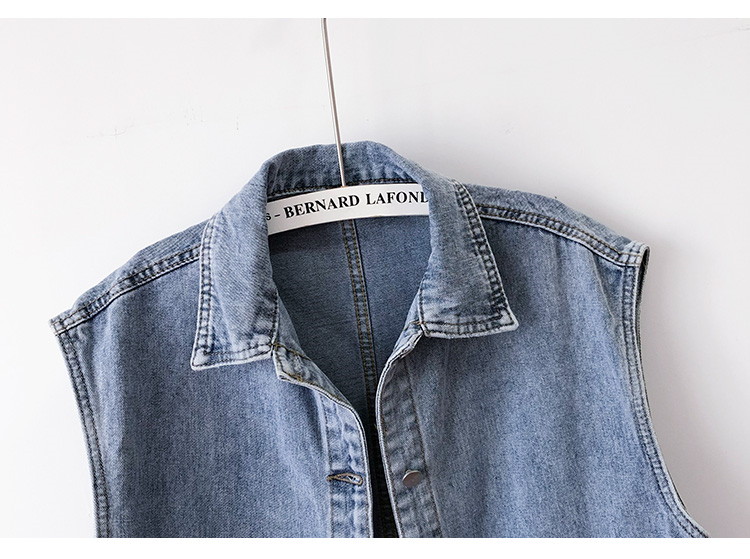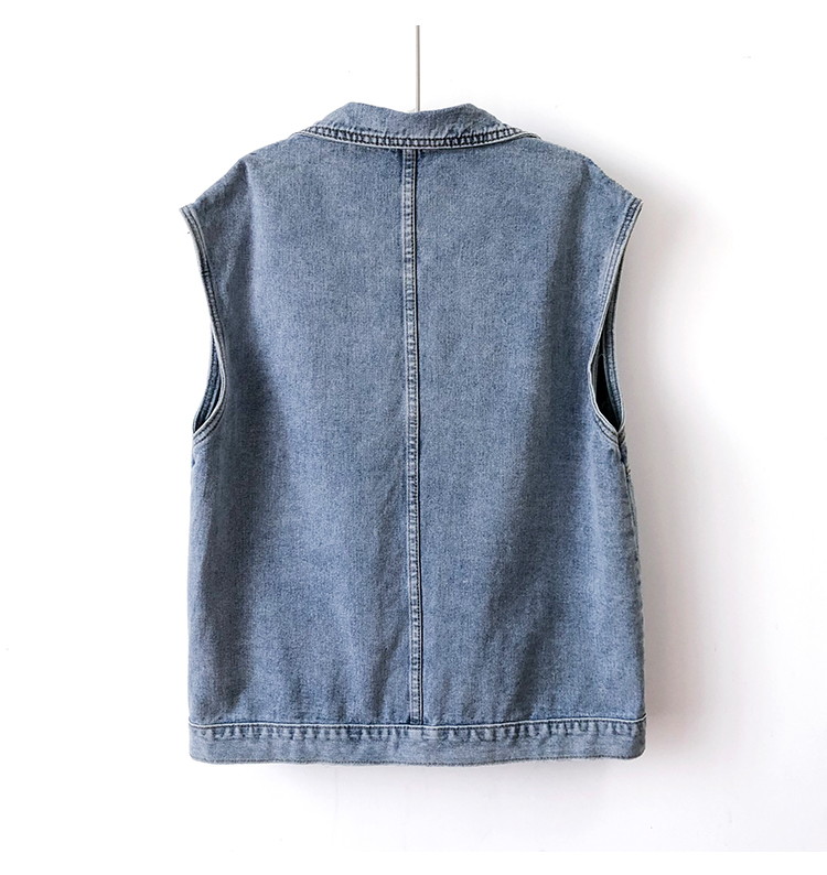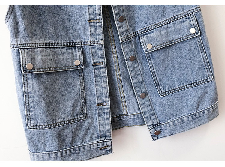 Женская короткая джинсовая безрукавка з большими карманами - голубая