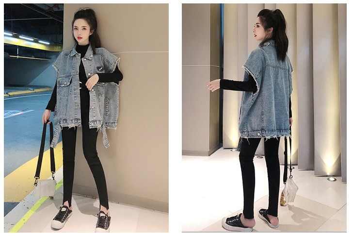Свободная женская джинсовая жилетка с рваностями