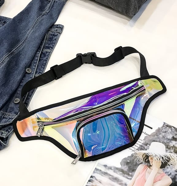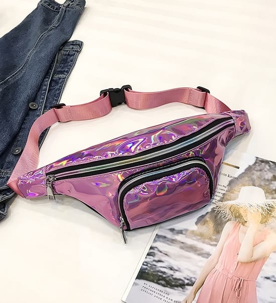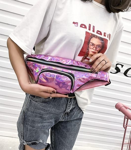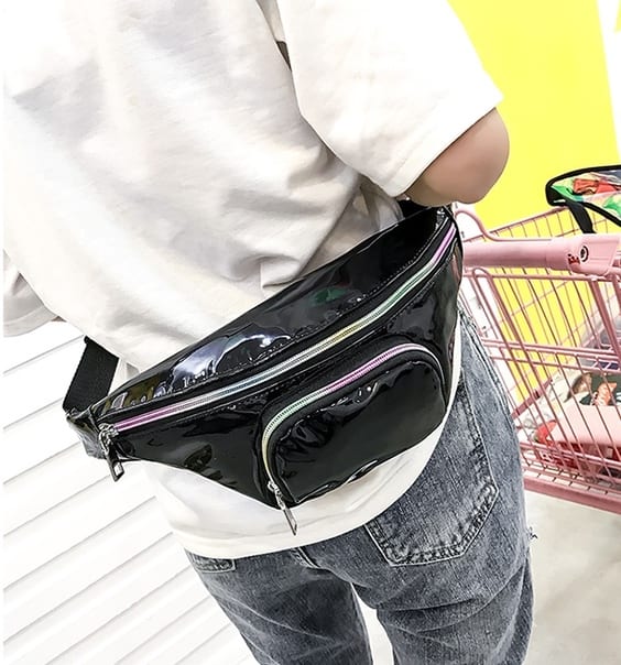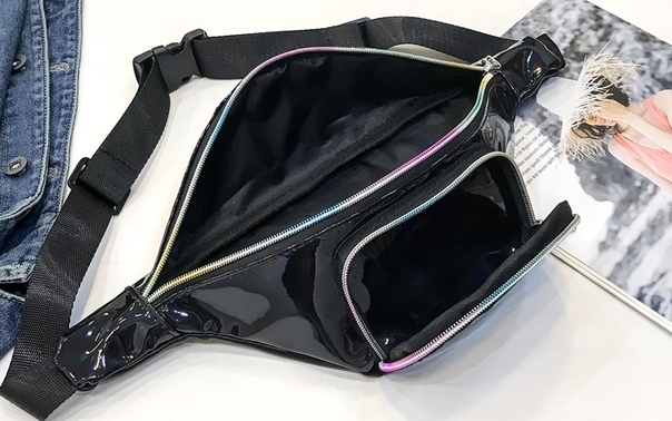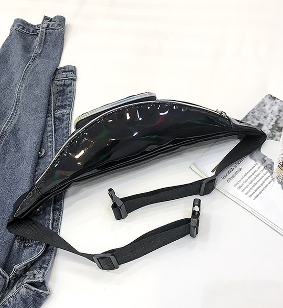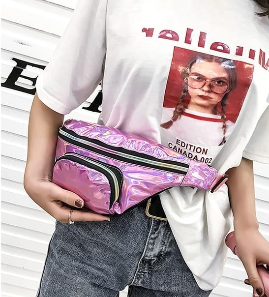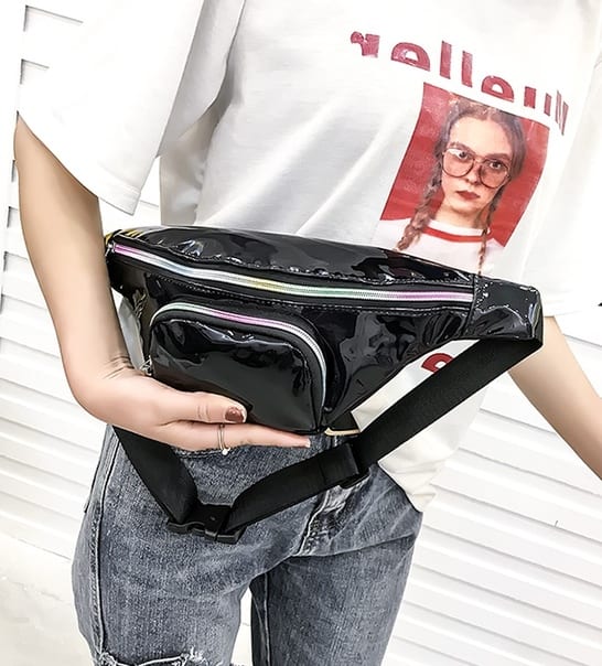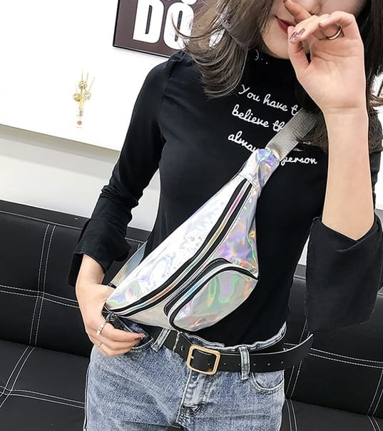 Блестящая переливающаяся сумка бананка на пояс