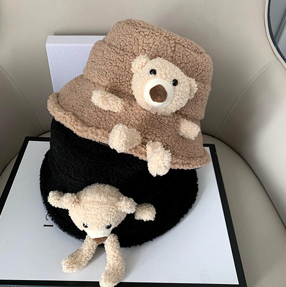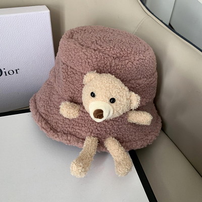 Зимняя плюшевая панама с мишкой