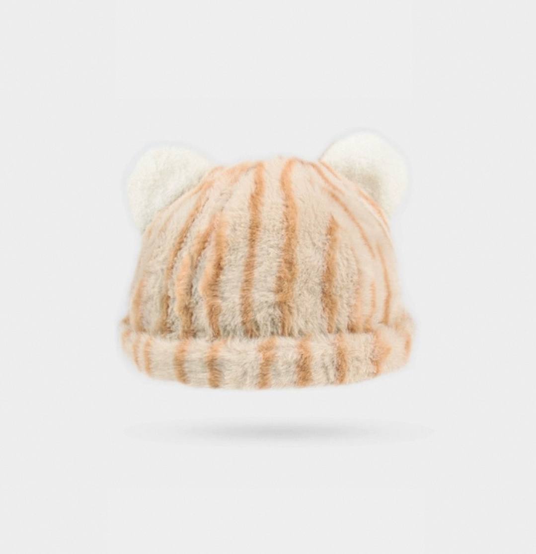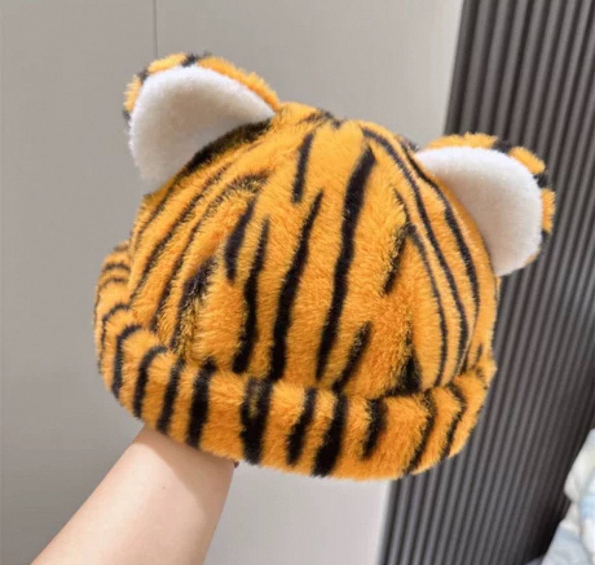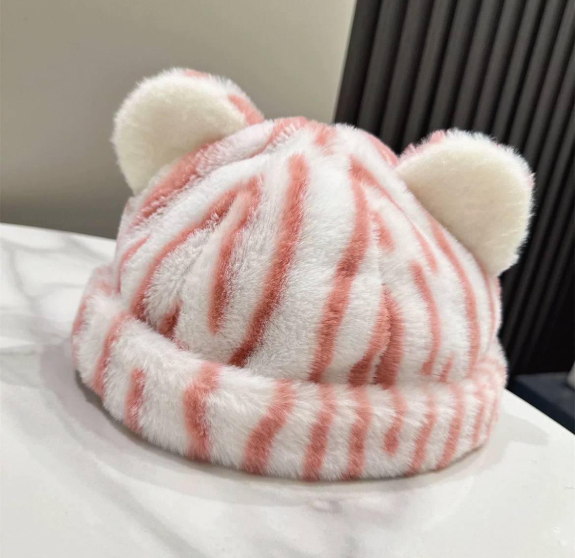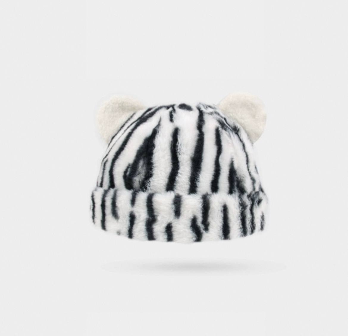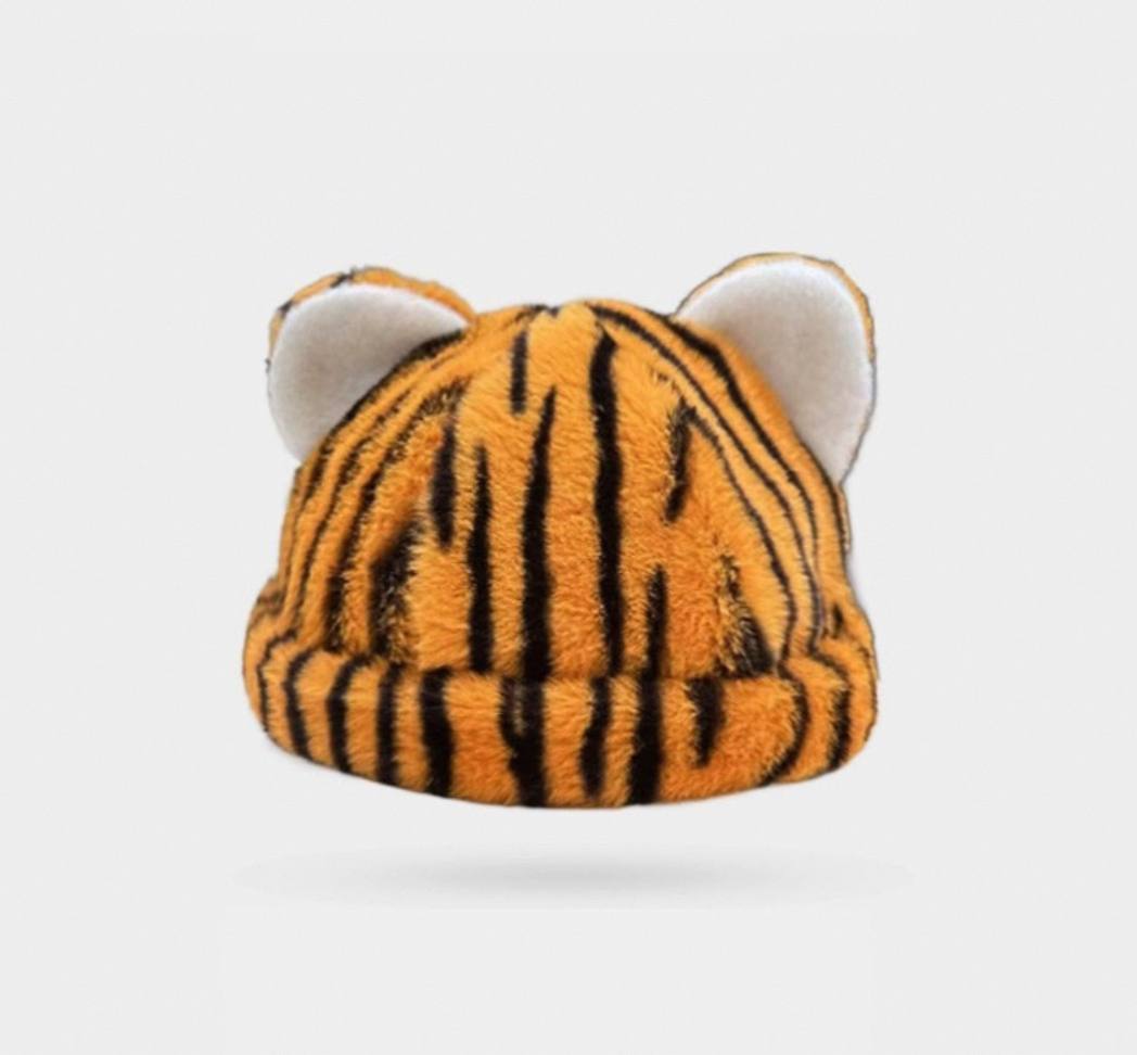 Плюшевая шапка с ушками и тигровым леопардовым принтом