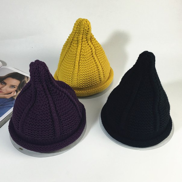 Женская вязаная заостренная шапка колпак