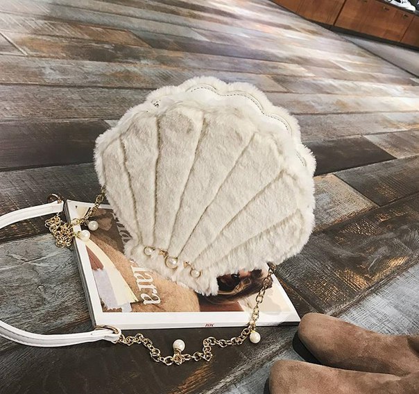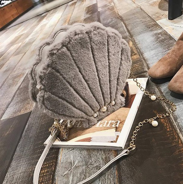 Оригинальный клатч в виде ракушки придется по вкусу девушкам, которые любят вделаться из толпы. Данная модель отлично впишется в зимний образ, ведь сделана из мягкого плюша, который создаст чувство уюта.