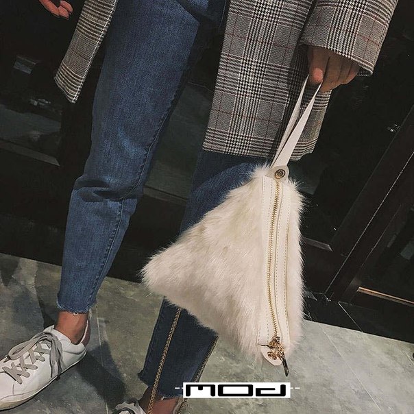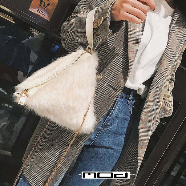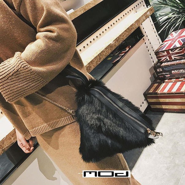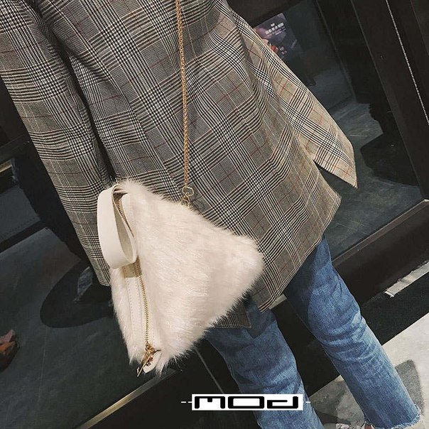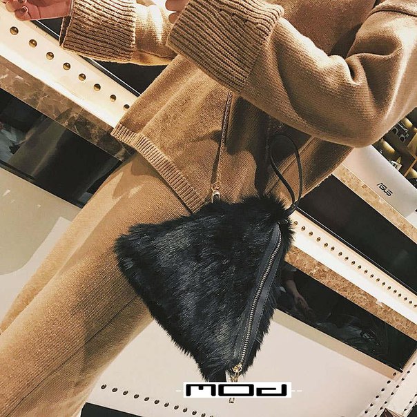 Треугольная сумка придется по вкусу девушкам, которые любят вделаться из толпы. Данная модель отлично впишется в зимний образ, ведь сделана из мягкого и пушистого меха, который создаст чувство уюта.