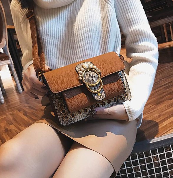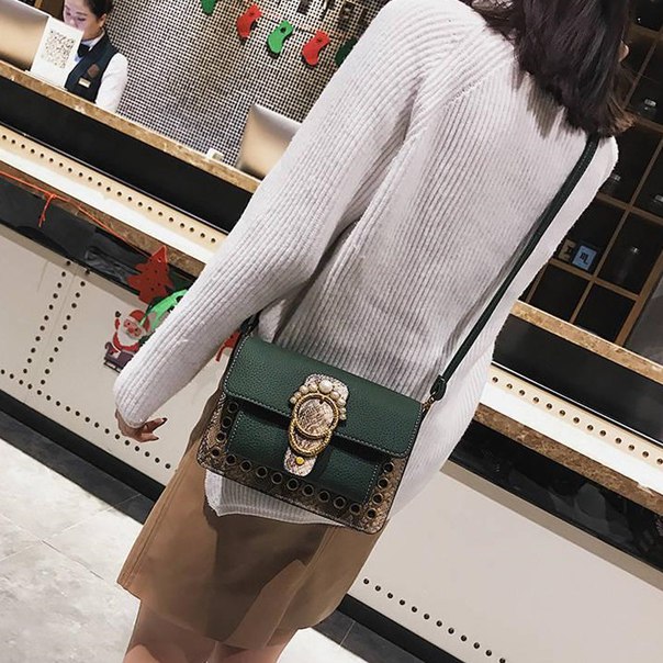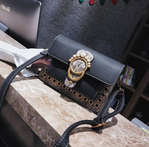 Она способна дополнить любой образ или же стать его ярким акцентом. Для украшения данной сумки дизайнеры использовали массивную яркую бляху и сочетание змеиного принта с однотонной кожей. Для того что би создать максимально стильный образ вы можете выбрать цвет, который будет вам по вкусу (бордовый, черный, рыжий, зеленый, синий).